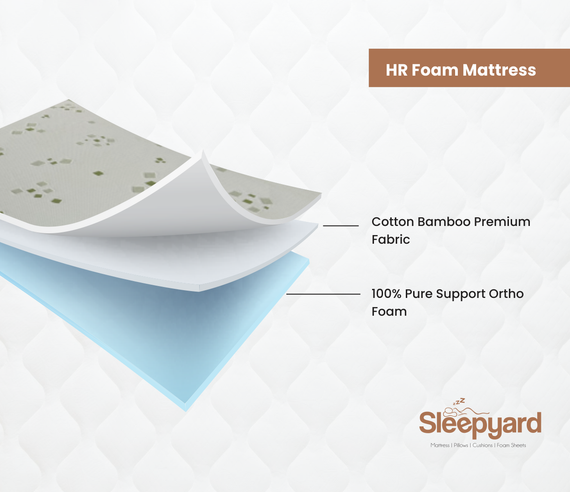 Regarding Sleepyard’s HR foam mattress which is designed for lovers of quality sleep. It provides a firm feel but at the same time provides the required amount of softness depending on your body’s requirement for support, to give you a comfortable night sleep.